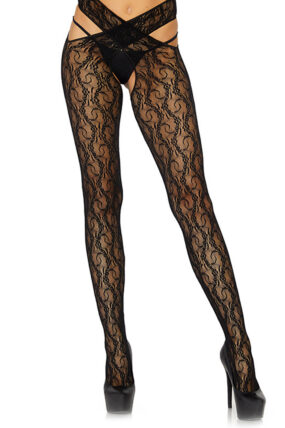 Collant a rete senza cavallo con reggicalze neri