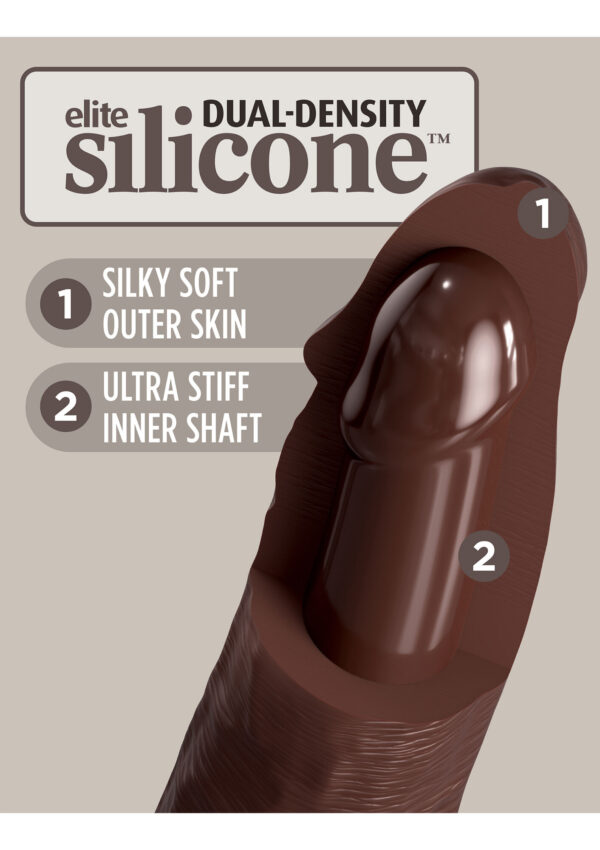 This King Cock Elite silicone dildo is made from high quality dual density Elite Silicone, making it stiff on the inside and soft on the outside. The lifelike silicone outer skin is smooth to the touch, while the silicone inner shaft is stiff and erect like a real penis, making your pleasure experience as true to real life as possible! The solid suction cup has been designed for superior performance, giving you more versatility and convenience during use. The suction cup also makes this King Cock Elite dual density silicone dildo Body Dock and harness-compatible if desired.