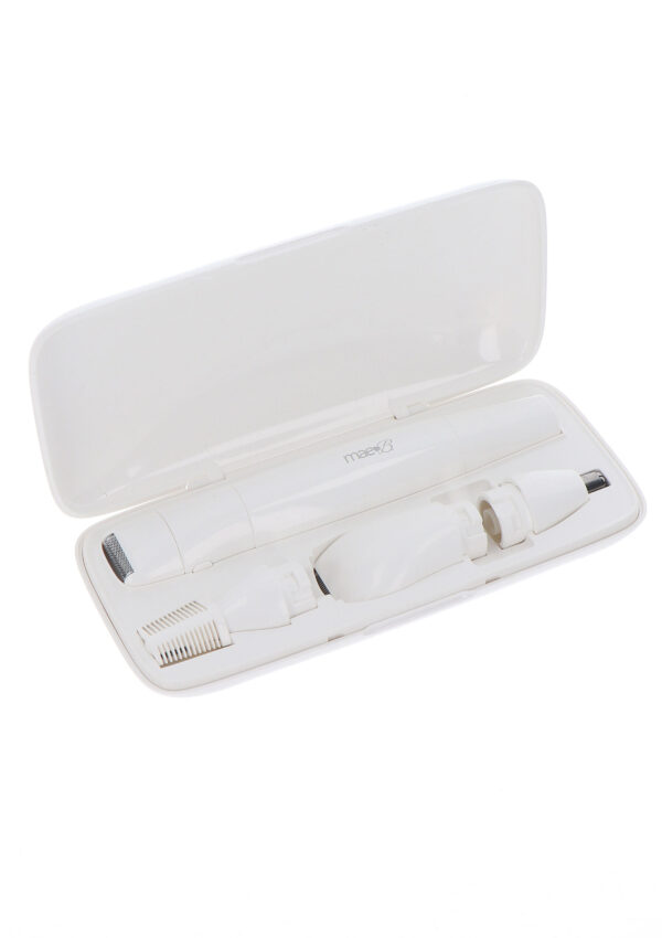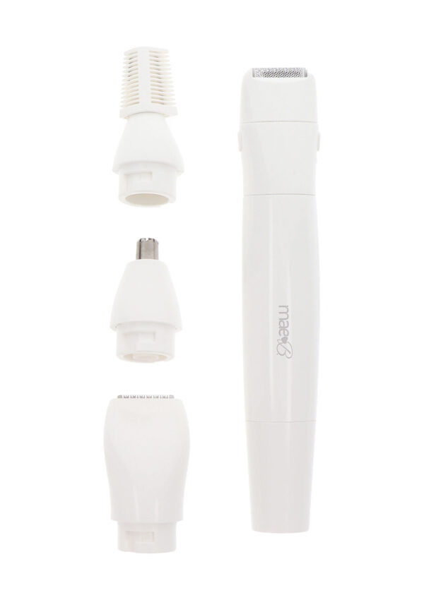 All in one Ladyshave – Precisely trim and style your facial and body hair with the all-in-one ladyshave from Mae B. The ergonomic shaped handle provides optimal control and comfort during use. The sharp, hypoallergenic, stainless-steel blades remove facial and body hair efficiently and safely. The all-in-one lady shave includes a complete set with four different trimming heads and a storage case to keep the device and accessory safe.
