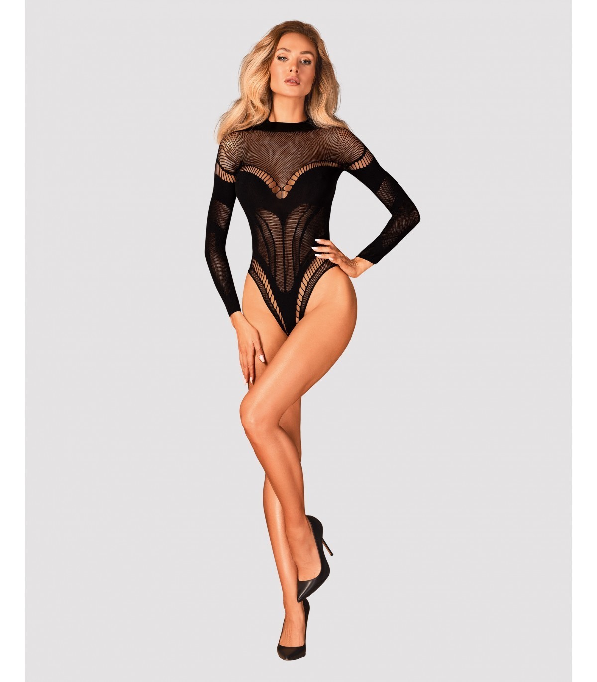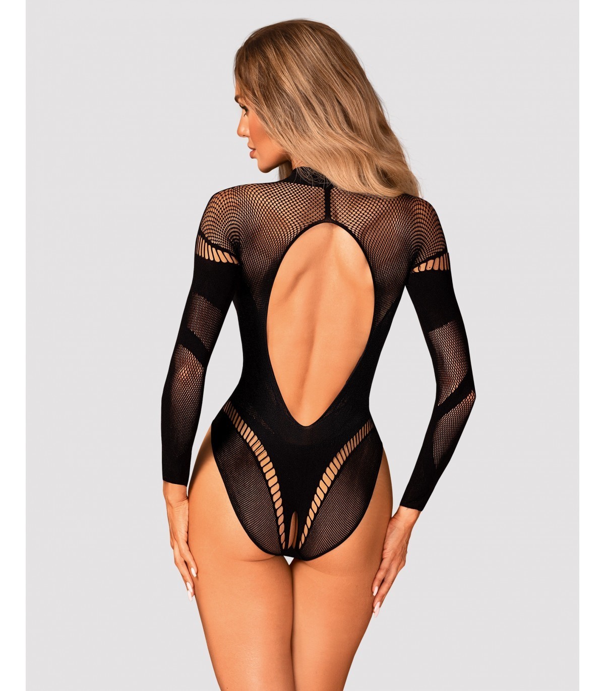 “Orsacchiotto sexy realizzato in un tessuto gradevole. Gli ornamenti geometrici si adattano perfettamente al corpo, enfatizzandone i pregi. L’intrigante taglio sulla schiena attira l’attenzione e aggiunge sex appeal. Il cavallo aperto è un dettaglio piccante che aggiungerà sicuramente un tocco di calore all’atmosfera notturna…