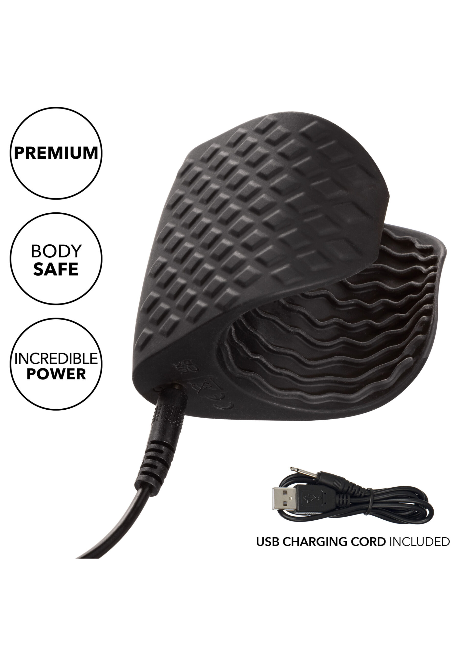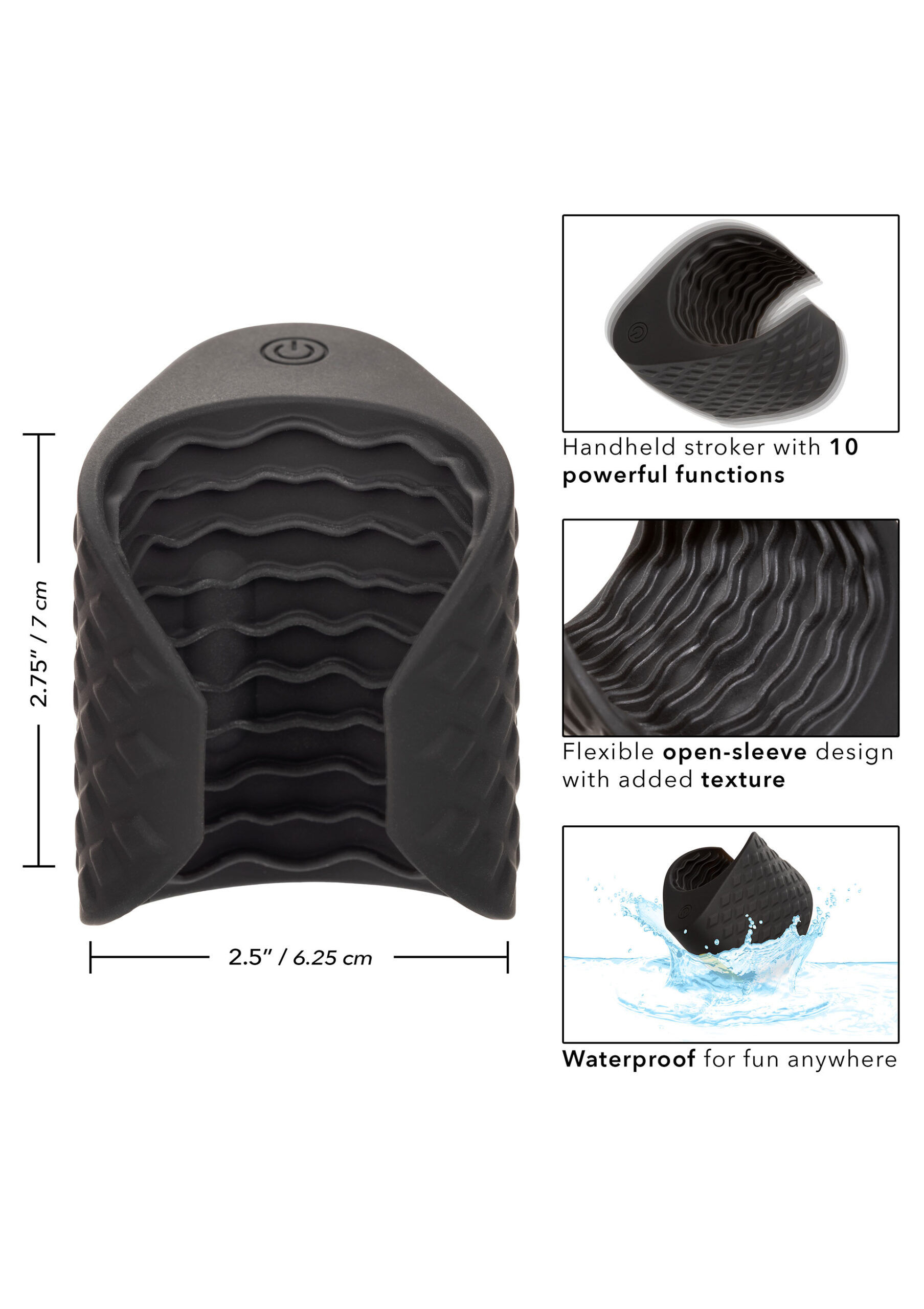 The Boundless Grip Stroker is a pulsating masturbator crafted for maximum stroking action. The handheld silicone stroker delivers total control over pleasure with 10 functions of vibration, textured surface, and versatile design. Take total control over your pleasure with the handheld stroker, the uniquely textured surface indulges with added stimulation. The shuddering vibration functions increase pleasure, while the textured surface sensually teases. Cycle through 10 powerful functions of vibration at the touch of a button. Enjoy up to 70 minutes of vibrating pleasure. Charge up your passion in 1 hour by plugging the provided USB cable into the self-sealing charging port on the base of the stroker.