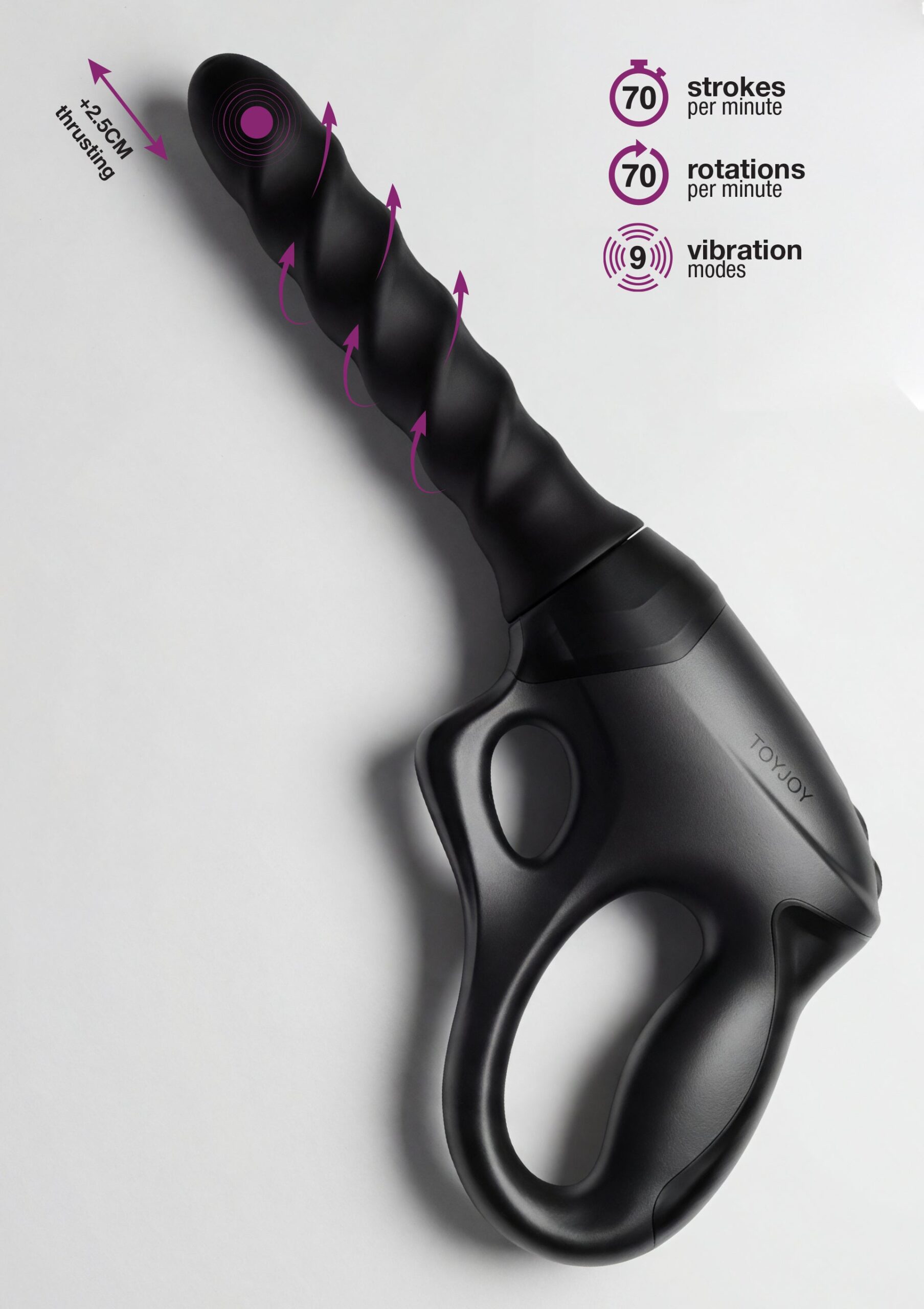 La sua caratteristica impugnatura a pistola offre un controllo saldo e senza sforzo, mentre l’asta brevettata rotante, vibrante e a spinta a 360° crea una sensazione interna vorticosa che aumenta ogni secondo. Il potente movimento di spinta raggiunge fino a 2,5 cm, erogando 70 colpi al minuto, combinati con 70 rotazioni al minuto per un’esperienza profondamente immersiva. Che tu scelga un impulso costante o una rotazione audace, la rotazione e la spinta pericolosamente fluide del PRO+ rispondono ai tuoi desideri con una precisione impeccabile, mentre le 9 modalità di vibrazione offrono numerose opzioni per adattarsi al tuo umore.