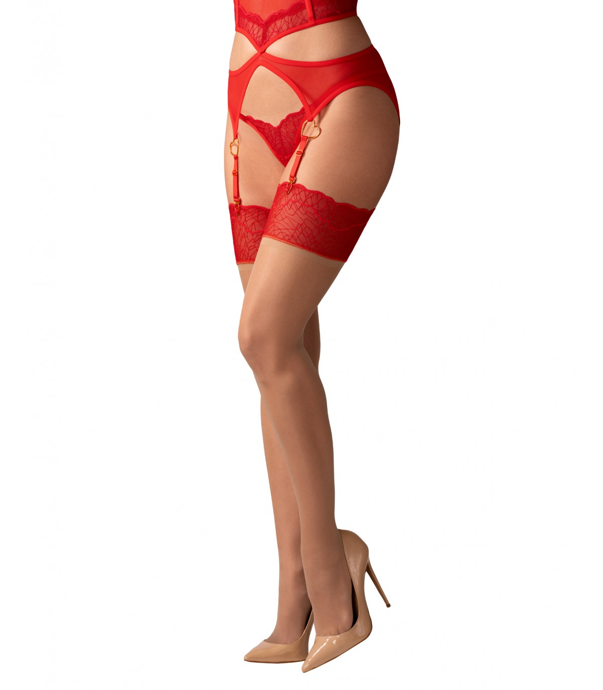 Un accessorio classico con un tocco moderno per accentuare le gambe. Realizzati in leggero tulle beige, questi collant offrono una texture delicata e ariosa che si fonde perfettamente con la pelle. L’esclusivo bordo in pizzo rosso aggiunge un tocco di colore audace e sofisticato che fa risaltare questi collant. • Calze Cupid Desir in tonalità nude • Con bordo in pizzo rosso sulla parte superiore • Calze che non si sostengono da sole • Tessuto: 90% poliammide, 10% elastan • Progettate nell’UE Eleganti calze in pizzo per completare qualsiasi look. Progettate ad arte nell’UE.