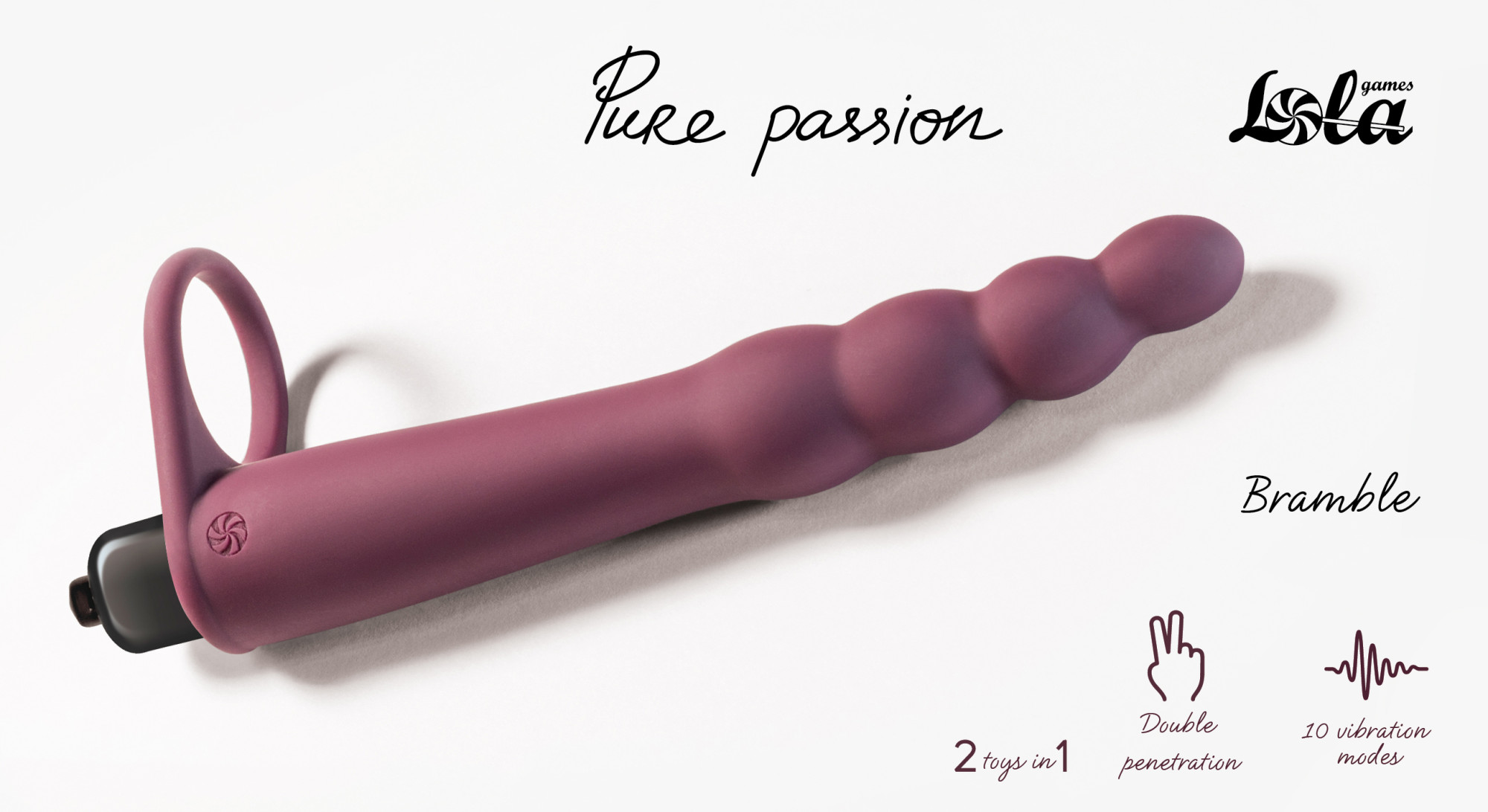 Dildo per doppia penetrazione Bramble realizzato in silicone anallergico. Forma in rilievo e pieghevole. Può essere posizionato sulla radice del pene tramite anello fallico. Si allunga bene e si adatta a qualsiasi dimensione. La stimolazione aggiuntiva viene effettuata per mezzo del vibrobullet con 10 modalità. È alimentato da 1 batteria AAA (non inclusa). Può essere facilmente rimosso dalla custodia in silicone e utilizzato separatamente.
