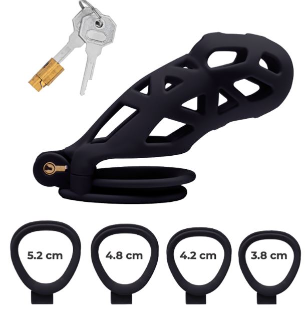 La gabbia è dotata di una serratura con due chiavi e include quattro anelli intercambiabili di diverse dimensioni (3,8 cm, 4,2 cm, 4,8 cm e 5,2 cm), per consentire una regolazione personalizzata in base alla propria anatomia e al livello di costrizione desiderato. Questo sistema la rende adatta sia ai principianti che si avvicinano per la prima volta al mondo BDSM, sia agli utenti più esperti alla ricerca di un controllo totale e di un utilizzo prolungato.