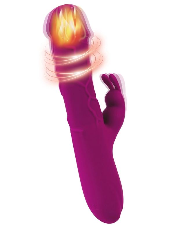 Il vibratore riscaldante Helios è un dispositivo multifunzionale progettato per la stimolazione simultanea di vagina e clitoride, offrendo momenti di piacere intensi.