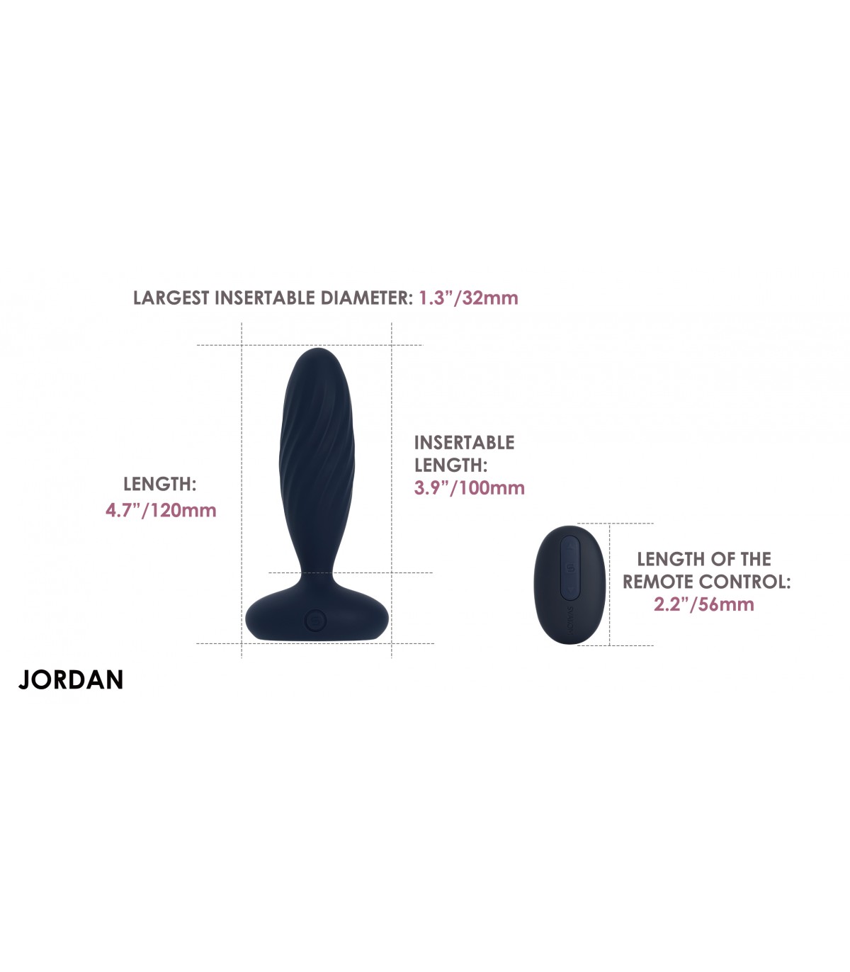 VIBRATORE ANALE JORDAN THRUST CONTROLLATO DA APP • Scopri un gioco anale superiore con stimolazione a spinta e vibrazione. • Goditi il suo corpo sottile e sodo, il poggiatesta imbottito e la base ampia e sicura. • Il telecomando magnetico si attacca alla base, dotata di luci che cambiano colore. • Abbinalo all’app SVAKOM per maggiori opzioni di gioco da solo o in coppia. Doppia azione per un’esperienza di stimolazione massima. Jordan offre diverse intensità di spinta, vibrazione e modalità combinate, mentre le luci sulla base cambiano colore. Dispone anche della modalità Smart per imitare i ritmi sessuali. Mentre ti godi il suo corpo sottile e sodo, la testa imbottita, il collo stretto e la base ampia e sicura, usa il telecomando che si attacca magneticamente alla base per maggiori opzioni di gioco o prova l’app SVAKOM. Ulteriori caratteristiche includono la ricarica USB, un indicatore di batteria e un blocco da viaggio. Caratteristiche: Azionamento e vibrazione Sicuro per l’ano con base illuminata Telecomando magnetico Controllabile tramite app e personalizzabile Caratteristiche tecniche: Nome prodotto: Jordan Materiale: Silicone; ABS Dimensioni: 120 x 60 x 40 mm (vibratore); 56 x 34 x 14 mm (telecomando) Dimensioni inseribili: 100 x 32 x 32 mm (vibratore); 3,9 x 1,3 x 1,3 pollici Peso: 83 g (vibratore); 16 g (telecomando) Capacità della batteria: 400 mAh (vibratore); 210 mAh (telecomando) Tipo di batteria: batteria ai polimeri di litio (vibratore); batteria a bottone al litio (telecomando) Tempo di ricarica: 2 h Durata della batteria: 1 h Modalità: 1 (stimolazione); 1 (vibrazione); 5 (combinate) Livelli di intensità: 5 (stimolazione); 5 (vibrazione); 5 (combinati) Livello di impermeabilità: vibratore impermeabile; telecomando non impermeabile