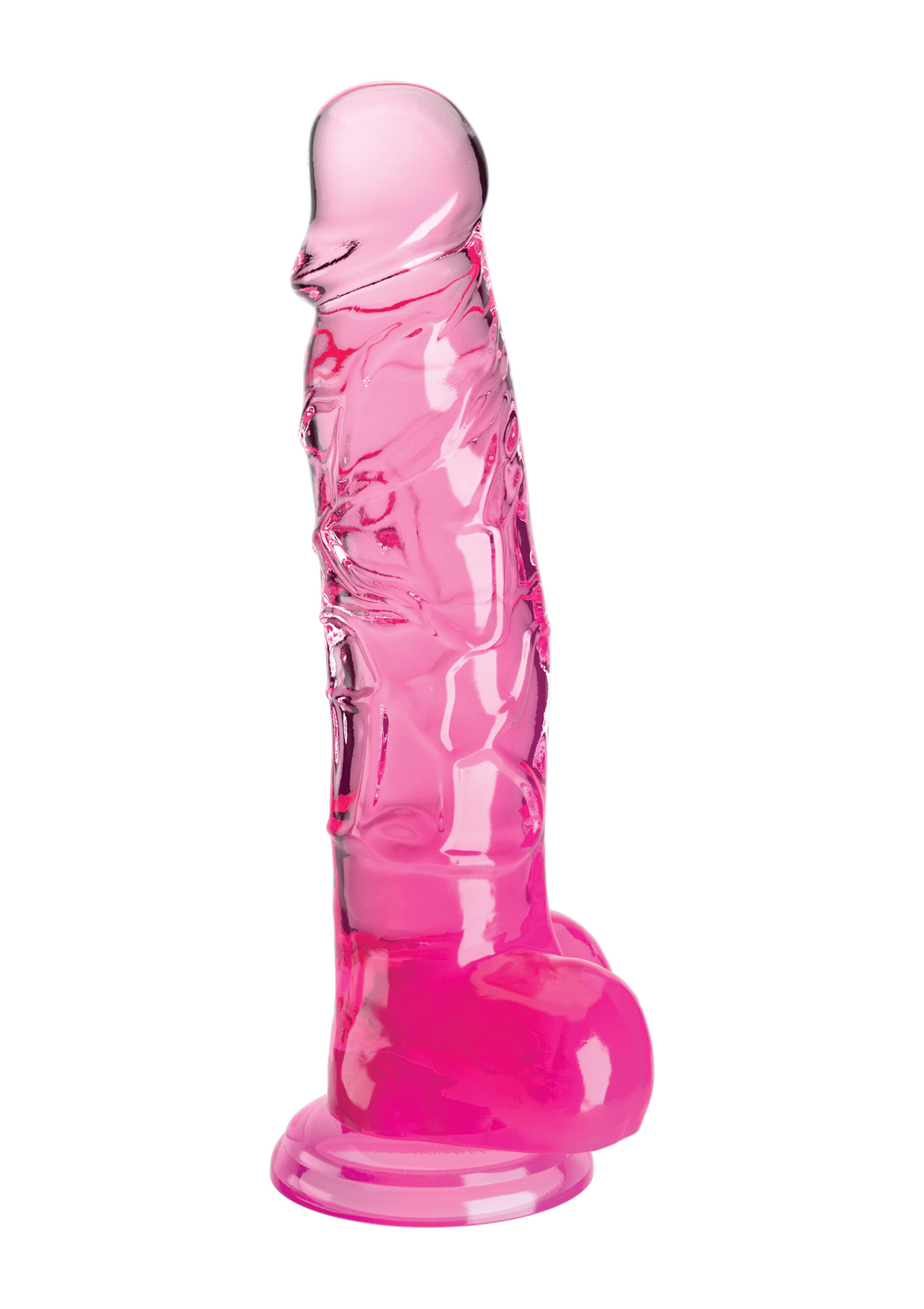 King Cock Clear 8 Inch w Balls Pink