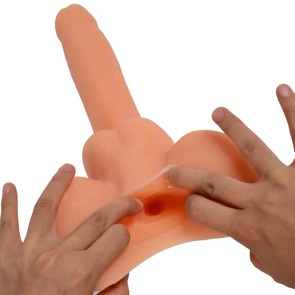 High quality, soft, flexible, leather-like material, realistic design and unique shape with testicles and anus, unisex dildo. Cleaning : wash with lukewarm soapy water and utensil cleaner before and after each use. A water-based lubricant is recommended. Weight of the product 1,5 kg.