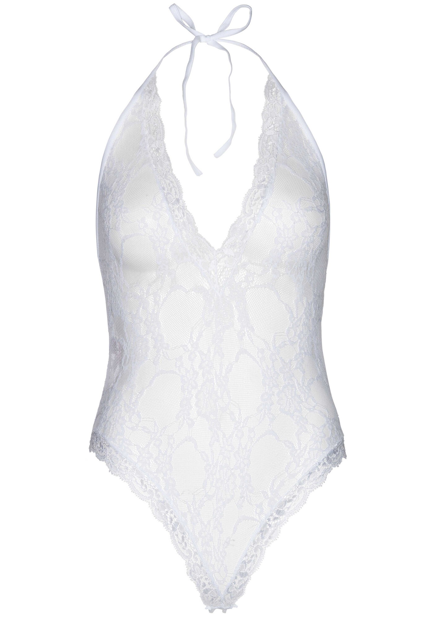 2Piece Floral lace deep-V teddy and matching stockings.