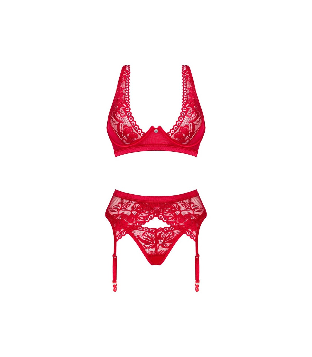 Cerchi una lingerie audace che accenda i sensi e garantisca un’esperienza indimenticabile? Abbiamo qualcosa di assolutamente perfetto! Il completo aperto Lacelove in rosso fuoco è perfetto per le donne che non hanno paura di sperimentare. Il taglio estremamente seducente aumenterà la temperatura e renderà impossibile distogliere lo sguardo… e le mani. Lasciati trasportare un po’ dalla passione e scopri dove ti porterà… Guarda i dettagli: un completo rosso Lacelove composto da reggiseno e perizoma cavallo e coppe aperte: aggiunge un tocco di stile Spalline regolabili e chiusura multistadio sul reggiseno – garanzia di una vestibilità perfetta Coppe con ferretto che accentuano il seno Un intrigante ciondolo attira l’attenzione Tessuto elastico: si prenderà cura del tuo comfort (90% poliammide, 10% elastan)