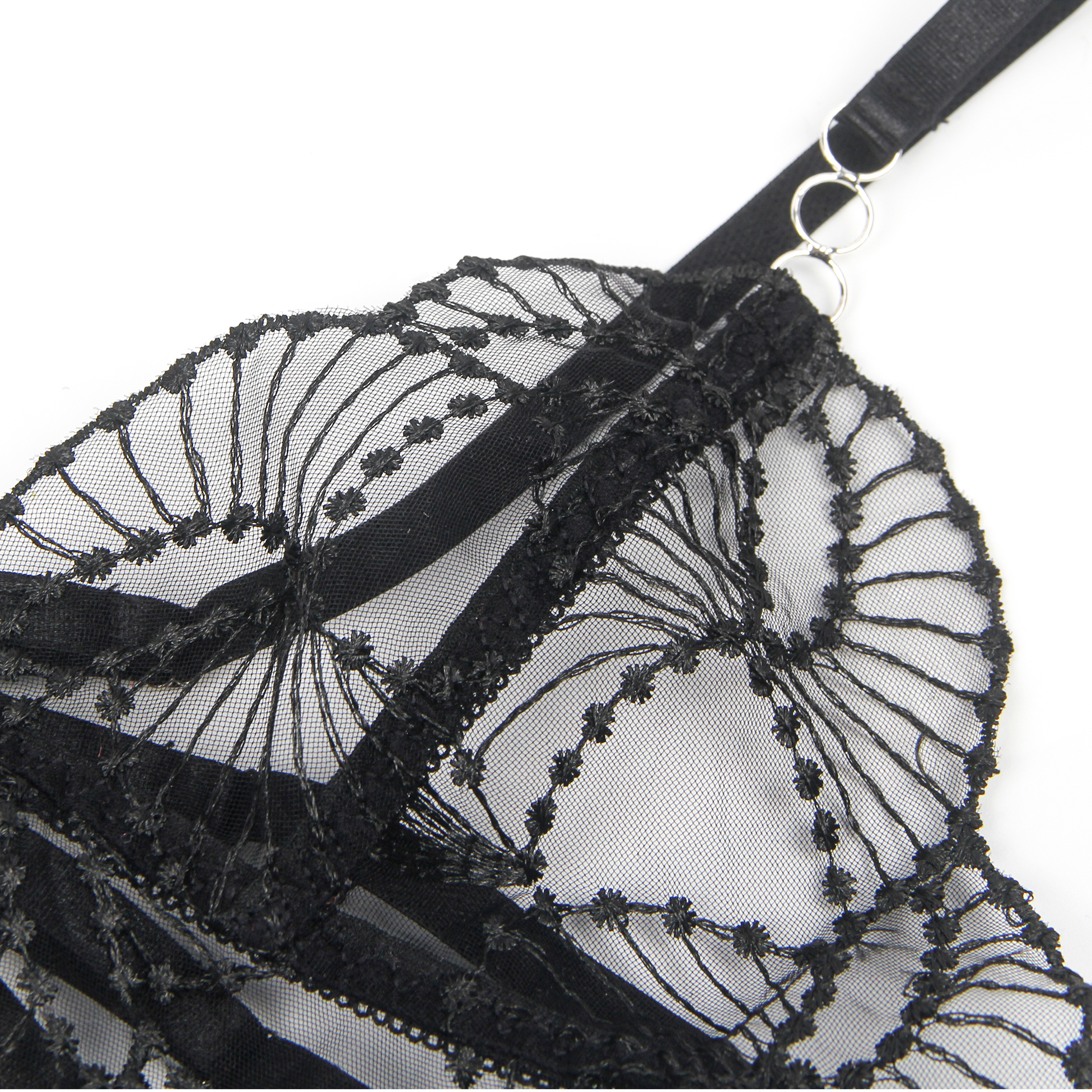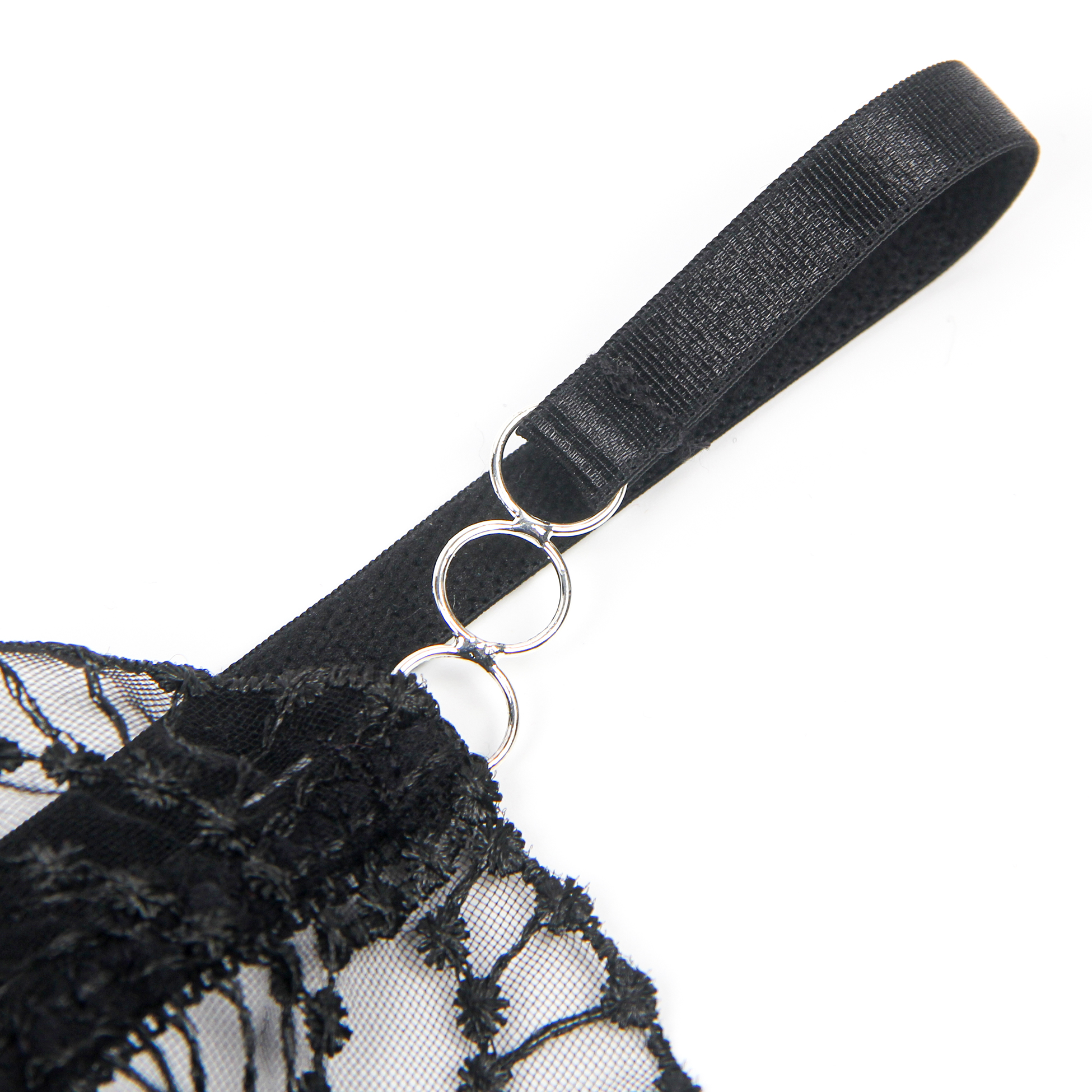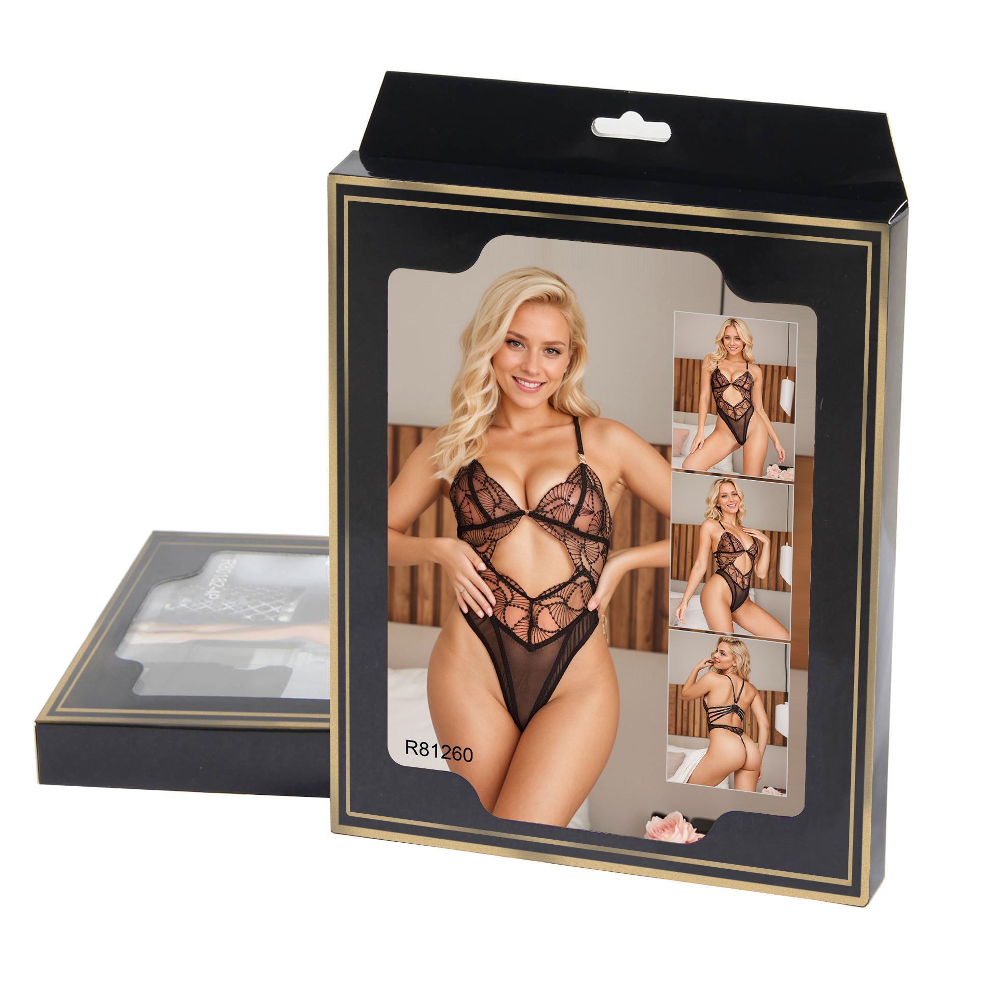 Body con dettagli floreali, trasparenze sul seno e pancia.