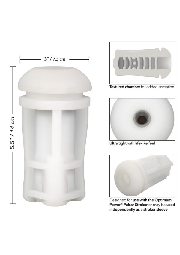 This premium sleeve fits into the Optimum Power Pulsar Stroker but can be used independently for a passionate stroking experience. The premium TPE is a body safe, unscented and phthalate free to keep you most sensitive spots, happy and healthy.