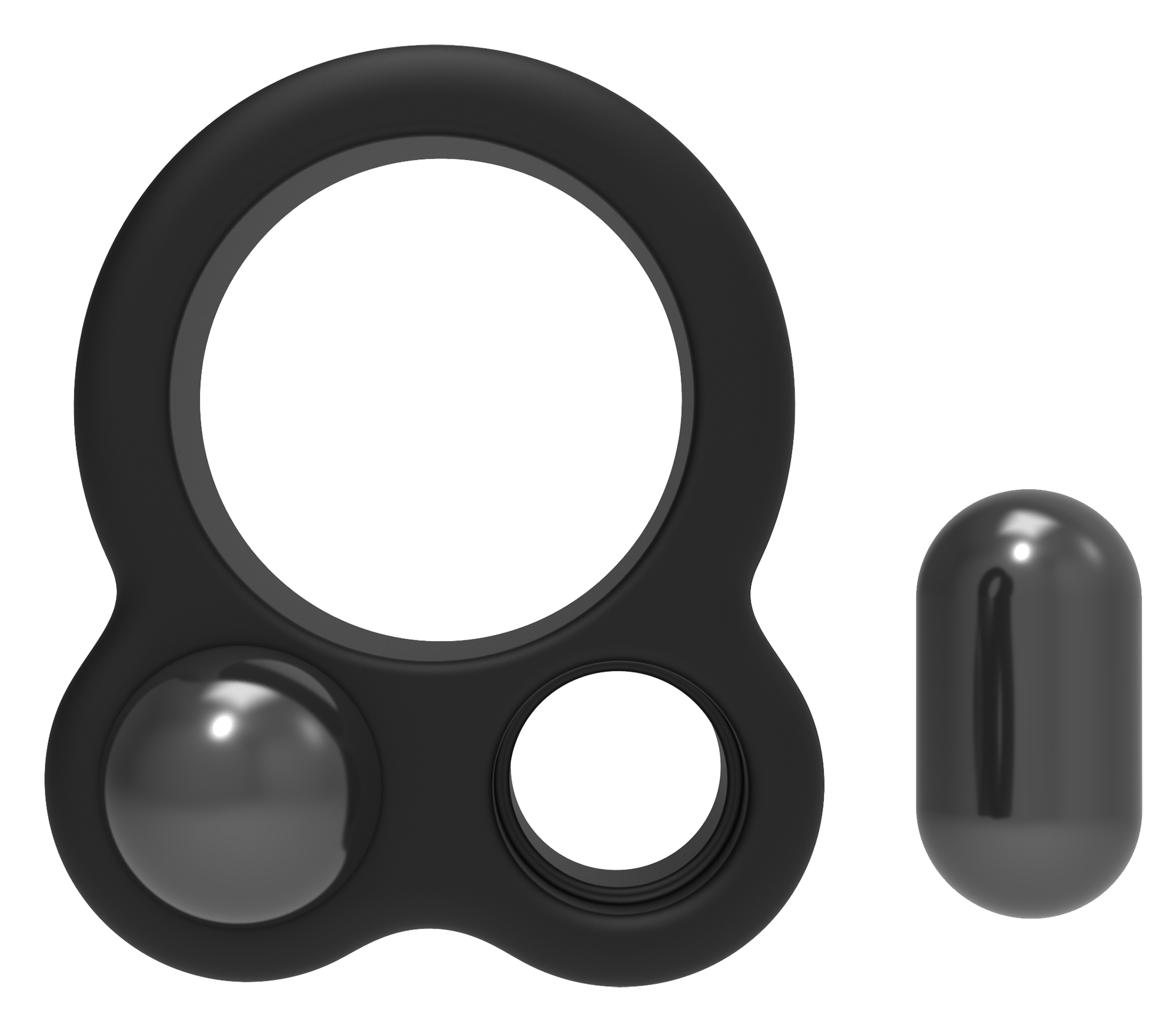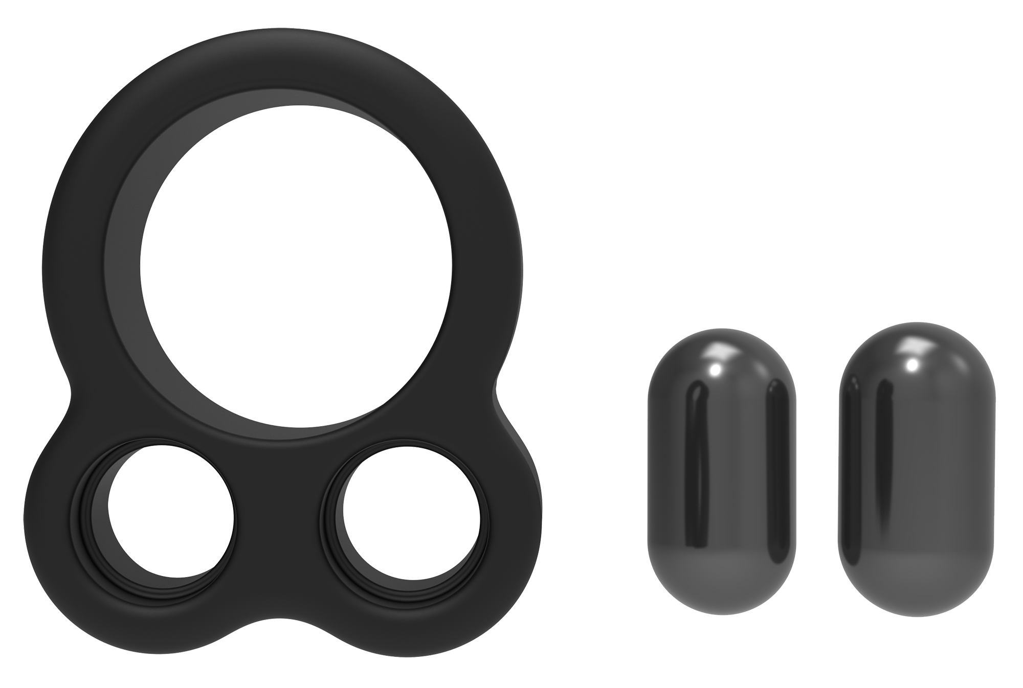 This Ramrod penisring features an extension that holds up to 2 small weights. Each grooved hole in the extension supports a 57-gram removeable steel ball that locks securely into place. The penisring is stretchy and comfortable and fortifies erections, with incremental weight increases up to 114 grams in total. Made of soft and smooth, body safe silicone and steel.
