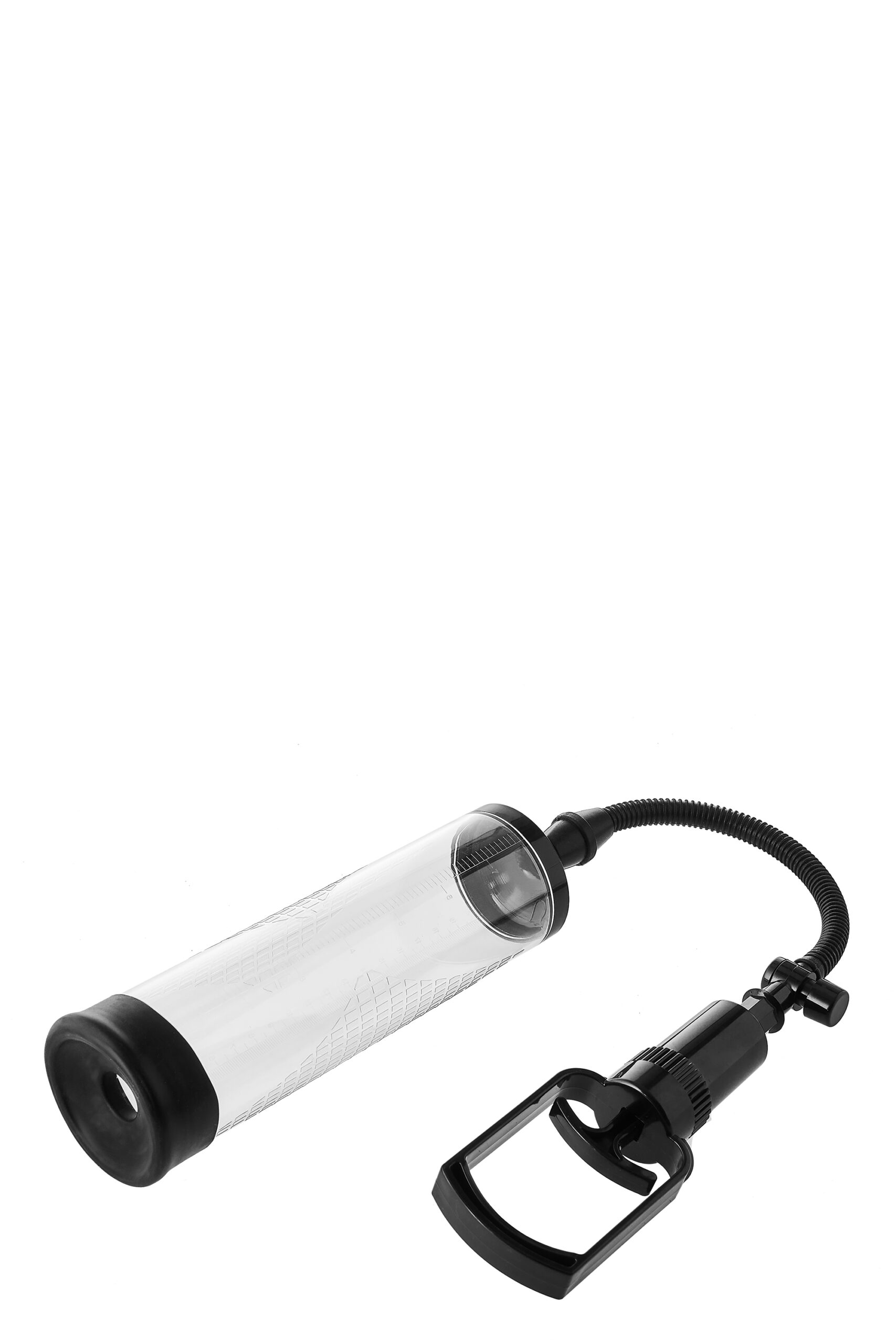 Improve your erection and performance with this Trigger Penis Pump & Masturbator. The vacuum also helps to get and maintain an erection in case of erectile dysfunction. Manual operation with the trigger that has a quick release valve. Transparent cylinder with size marks. With the extra sleeve the pump can be used as a masturbator. Including penis ring.