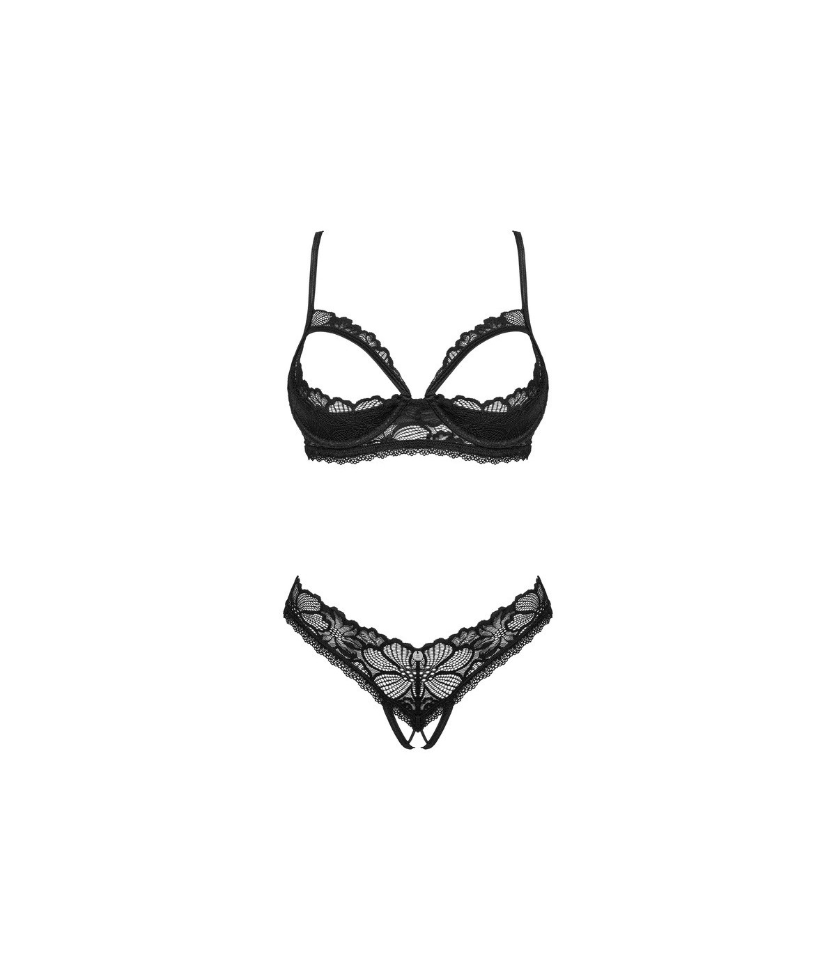 Non hai paura di sperimentare? Desideri donare al tuo corpo una lingerie eccezionale? Il completo Serafia è una deliziosa combinazione di eleganza e un tocco piccante. La leggerezza del pizzo nero coccolerà la tua pelle e ti farà sentire a tuo agio. Il taglio incredibilmente seducente metterà in risalto la tua femminilità, aggiungerà sicurezza e riscalderà l’atmosfera. Momenti indimenticabili e pieni di intimità sono garantiti! Scopri i dettagli: Completo Serafia in nero – composto da reggiseno e perizoma. Taglio seducente: cavallo e coppe aperti. Chiusura multistadio e spalline regolabili – una vestibilità perfetta. Coppe leggermente imbottite con ferretto: metteranno in risalto le tue curve. Ciondolo scintillante: un accessorio interessante. Materiale sottile ed elastico – comfort garantito (90% poliammide, 10% elastan).