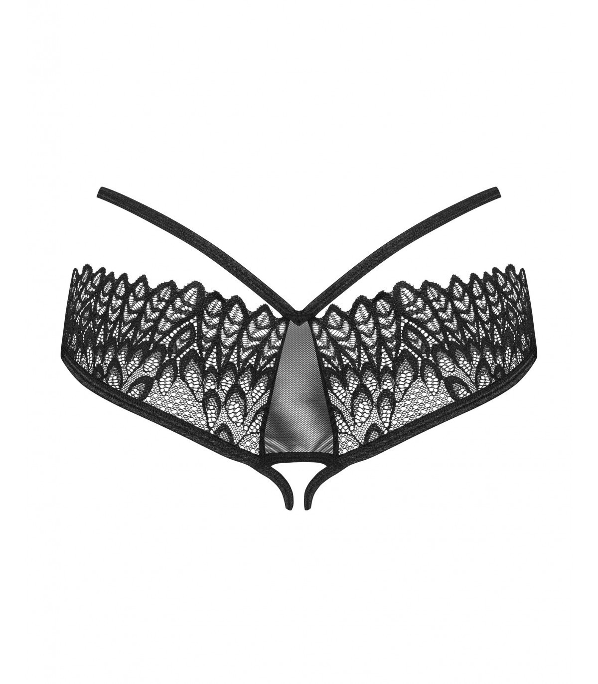 Le mutandine Donarella sono un esempio unico di lingerie dal taglio piccante. Il pizzo con motivi vegetali avvolge il corpo in modo delizioso, le fasce sui fianchi attirano l’attenzione e il tessuto tagliato sul sedere, insieme al cavallo aperto, sono progettati per stimolare i sensi! Mutandine Donarella nere senza cavallo, con motivo floreale combinato a fasce e ciondolo in argento. Progettate nell’UE, senza nichel, tessuto delicato al tatto, 90% poliammide, 10% elastan.