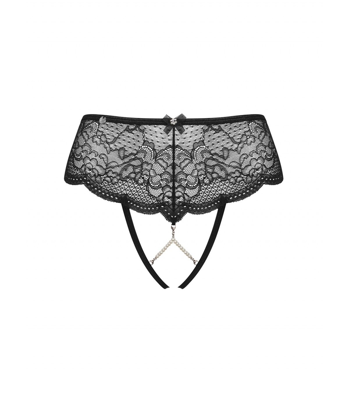 Cosa preferisci: lingerie seducente e discreta o il più bello possibile? Se sogni una combinazione di tutte queste caratteristiche, allora abbiamo qualcosa di fantastico per te. Lo stile perfetto che sicuramente ti piacerà, Pearlove! Arrossisci alla vista di questi slip. Guardali e opta per perle nere e forme ben evidenziate. Oh, guarda tu stessa con il tuo ragazzo! Le fantasie appassionate su di te non gli abbandoneranno la mente per tutto il giorno! Scopri i dettagli: Deliziosi slip in pizzo nero con stampa floreale. Perle sottili e delicate decorano la parte anteriore. Pizzo trasparente: look fenomenale! Cavallo aperto totalmente sexy. Materiale morbido ed elastico (44% poliammide, 56% elastan).
