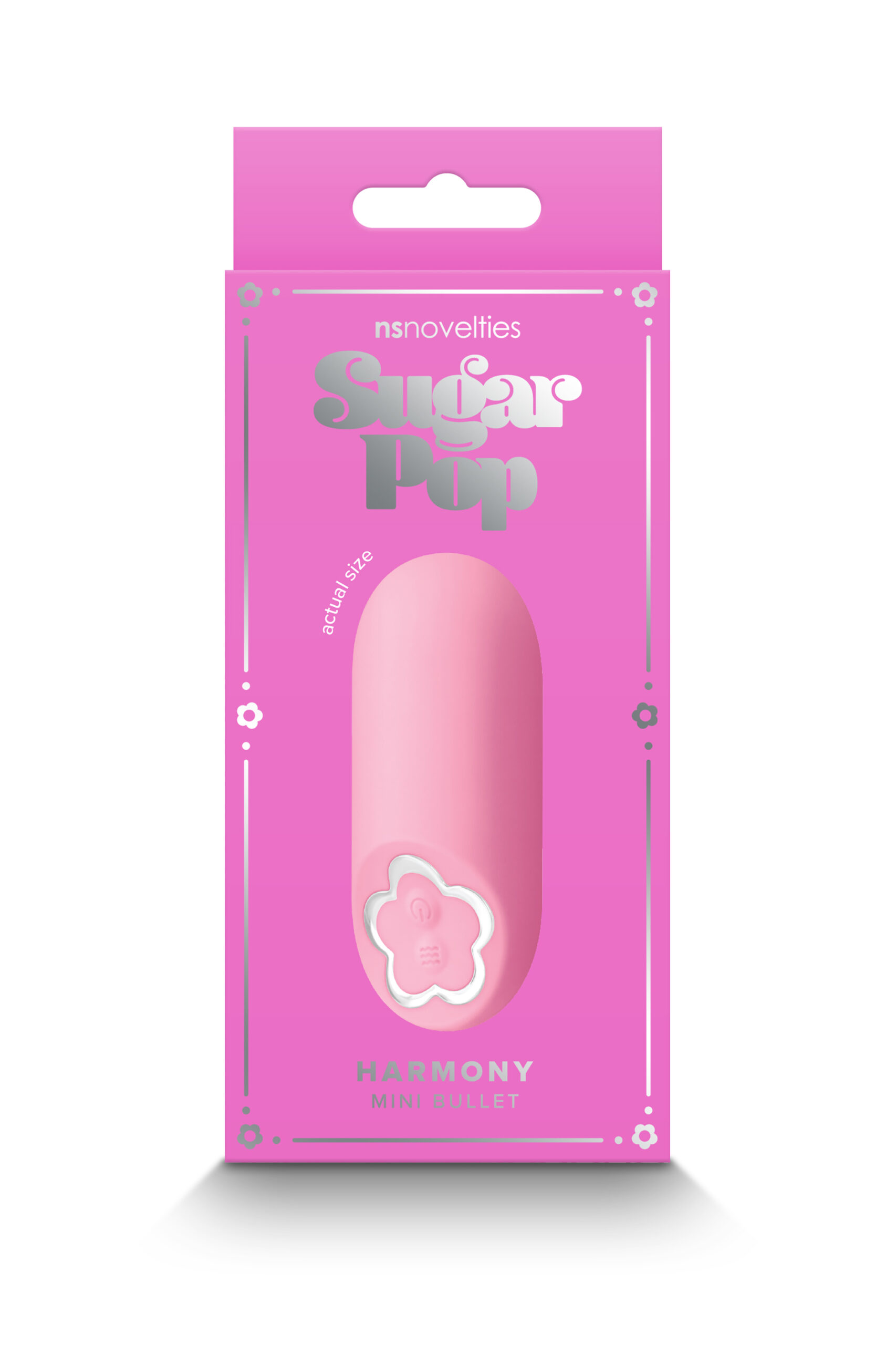 Harmony by Sugar Pop. A discreet mini vibrator that fits comfortably in the palm of your hand. Made of platinum grade silicone, Harmony delivers intense pleasure and satisfaction with 10 patterns of vibration. Water resistant, rechargeable, and suitable with all lubricants.