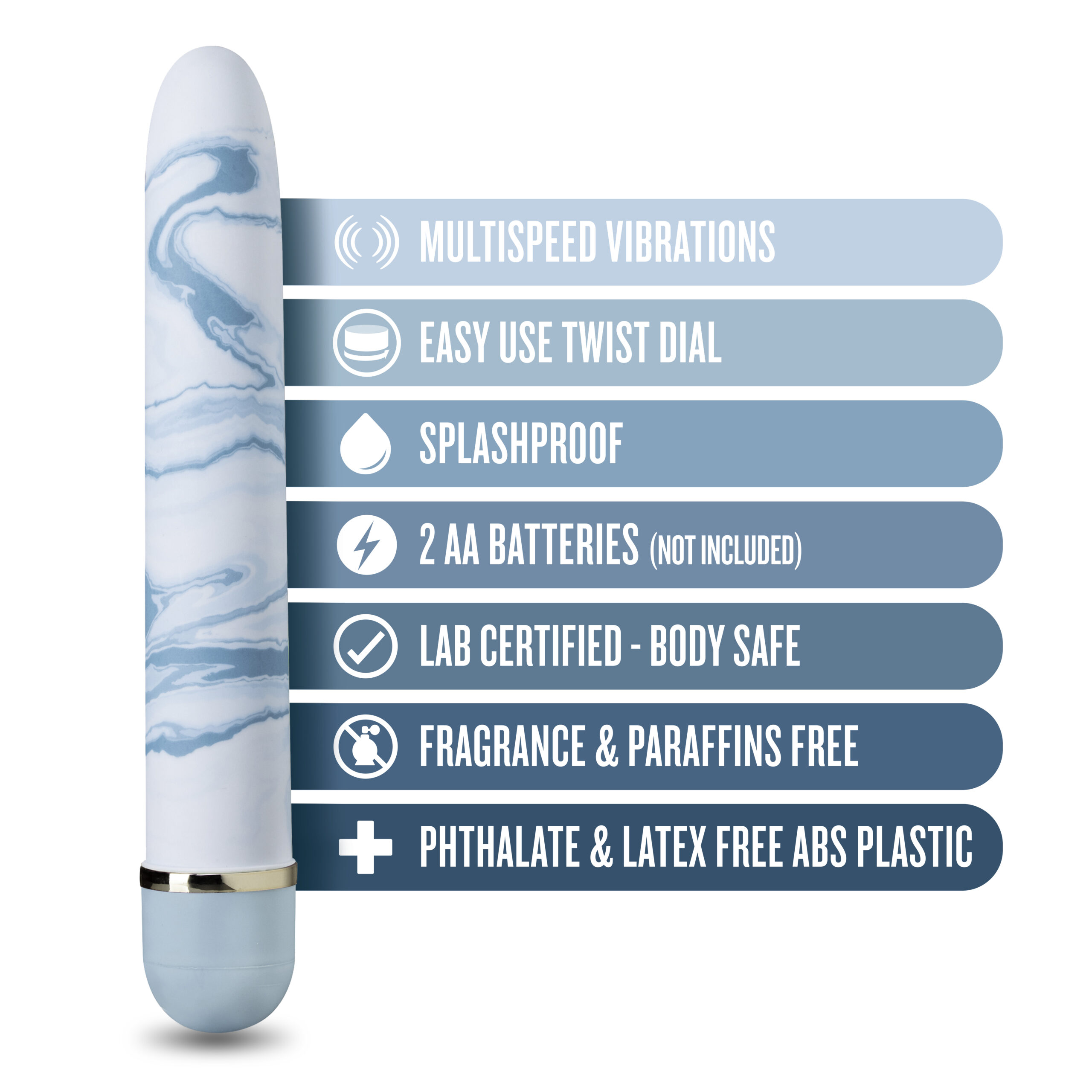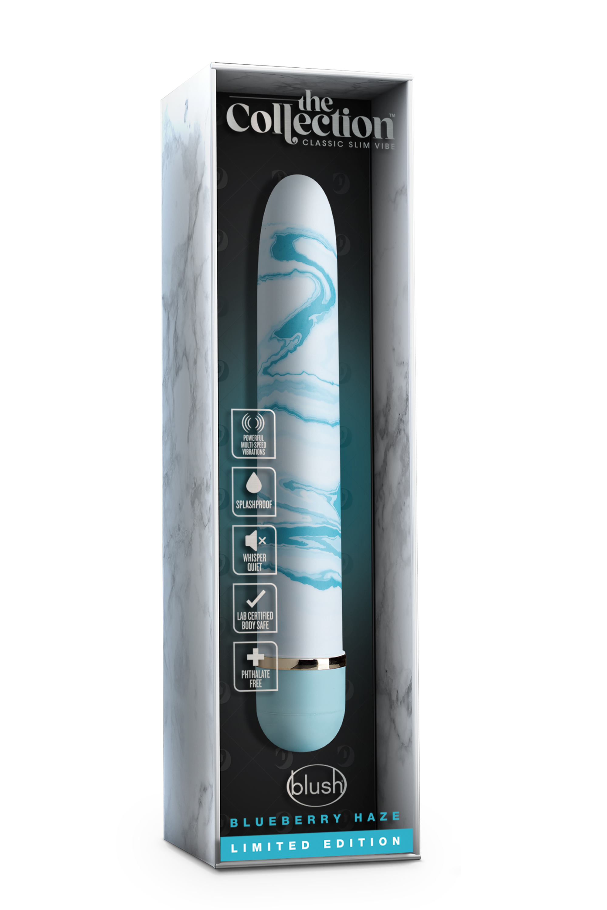 Who knew pleasure could be this fantastic? The Collection “Blueberry Haze” is a perfect gift for yourself or your lover. Quiet and discreet, Blueberry Haze delivers strong multi-speed vibrations, controlled by an easy twist dial. Made of smooth ABS plastic, it’s body safe and splashproof for easy cleaning. Requires 2 AA batteries (not included). As with all products and/or materials at Blush it has been 3rd party lab tested to meet or exceed REACH and Prop65 safety compliance directives. It’s your body. Be mindful of what you put in it.