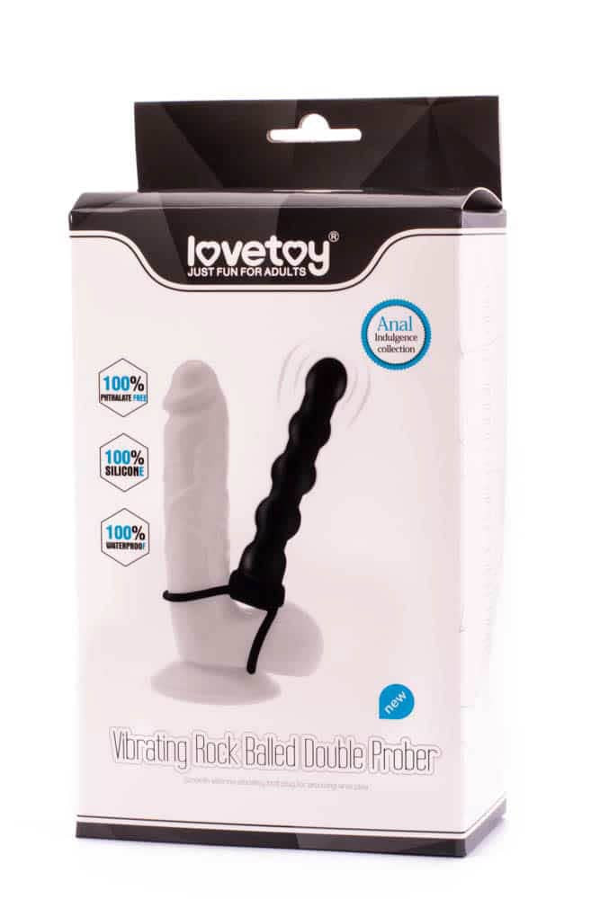 Double cock ring with realistic prober for double penetration fun ,Single speed bullet inside with strong Vibration and quiet design. Made from hypoallergenic silicone for body-safe play Cock ring stretches between 1.1-2.5 inches Ball ring stretches between 1.7-5 inches Length: 5.1 inches,Insertable Length: 3.9 inches width: 1.1 inches Bullets removable,exchangeable,1 x AAA battery (Not included)