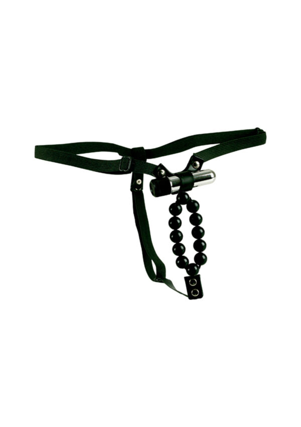 Take your lovemaking to a whole new level with the super sexy, all-embracing Vibrating Lover’s Thong With Stroker Beads, a unique and advanced massage product designed to give both him and her increased pleasure during life’s most romantic moments. Get intimate with your partner, knowing that you have a fun, flirty an exciting new accessory that can turn up the heat for the both of you, providing intense and sensual massage on contact. Designed for mutual stimulation, the pleasure beads give him intense massage while the wireless, removable micro stimulator provide deep pulsations for her. The G-string thong is fully adjustable so you can get the perfect fit and achieve the right level of tension. The silver plated, high-quality bullet is easy to operate and it can be removed from the thong for independent use anywhere on the body. The beaded thong and bullet are both easy to clean after each use and can be packed in your purse, handbag or luggage bag for romantic nights away.