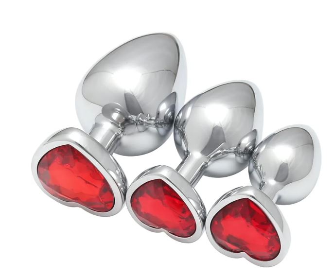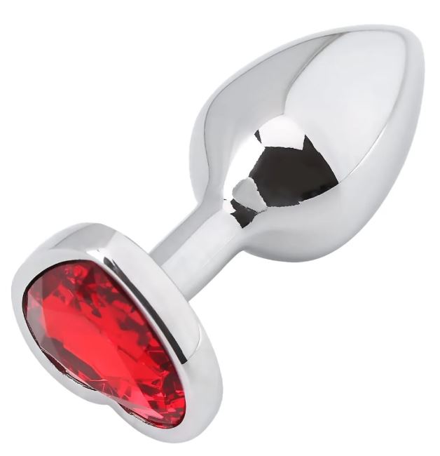 Plug anale con diamante a forma di cuore rosso, disponibile in S,M,L.