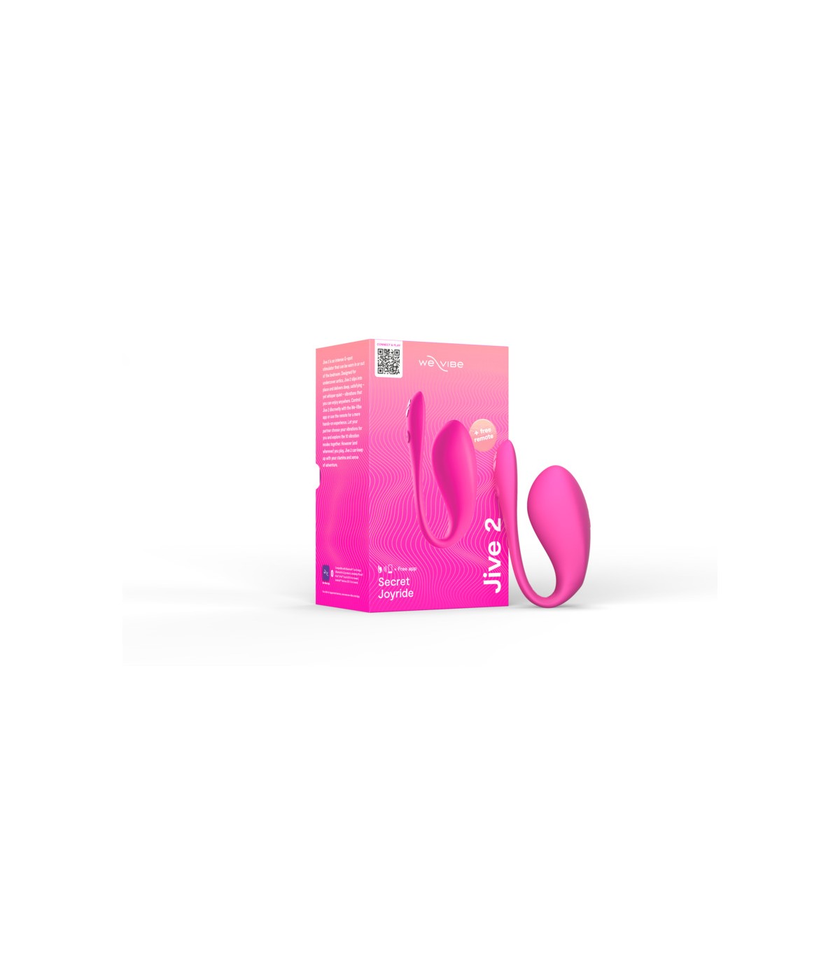 Jive 2 incorporates hands-free vibrations into solo or partner play thanks to its shape, which fits perfectly to each body. Jive 2 packs powerful, discreet vibrations into a small, soft wearable toy with an adjustable end that easily stimulates the G-spot and clitoris, even from a distance with app and remote controls. Jive 2 has been designed for erotic adventurers who love to experiment sexually and are encouraged to play in public. Jive 2 is their exciting secret: its control via app and remote control allows them to have discreet fun both inside and outside the home. Jive 2 works with simple one-button controls. Press the control button to turn it on, press it again to cycle through vibration modes and intensity levels, and hold it to turn the toy off. Jive 2 can also be controlled with the We-Vibe app or remote control for varied gameplay, even from a distance. Characteristics • Double stimulation • Ergonomic shape designed for pleasure • The perfect fit • Adjustable outer arm • Control via app and remote control distance • 10 intensity levels • Too quiet • Waterproof • Rechargeable • Body-safe silicone • Up to 4 hours of play • Charging time: 90 minutes