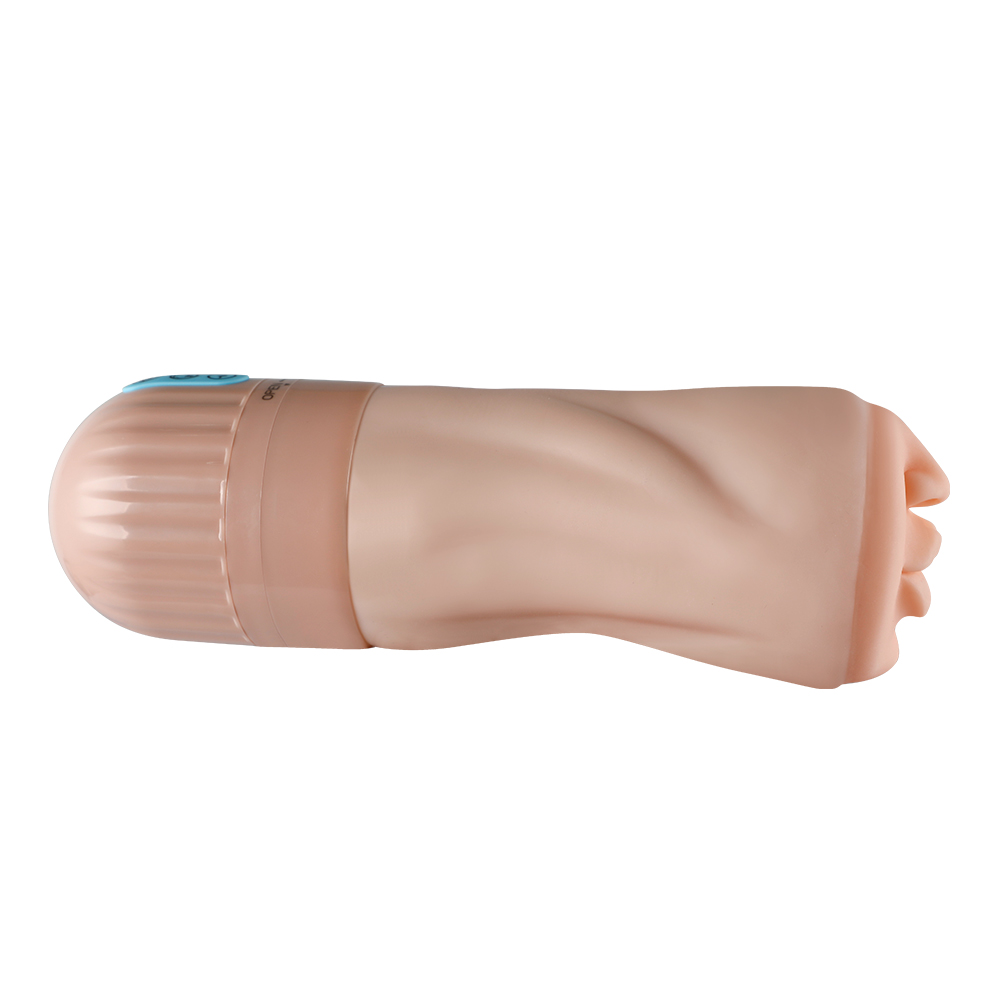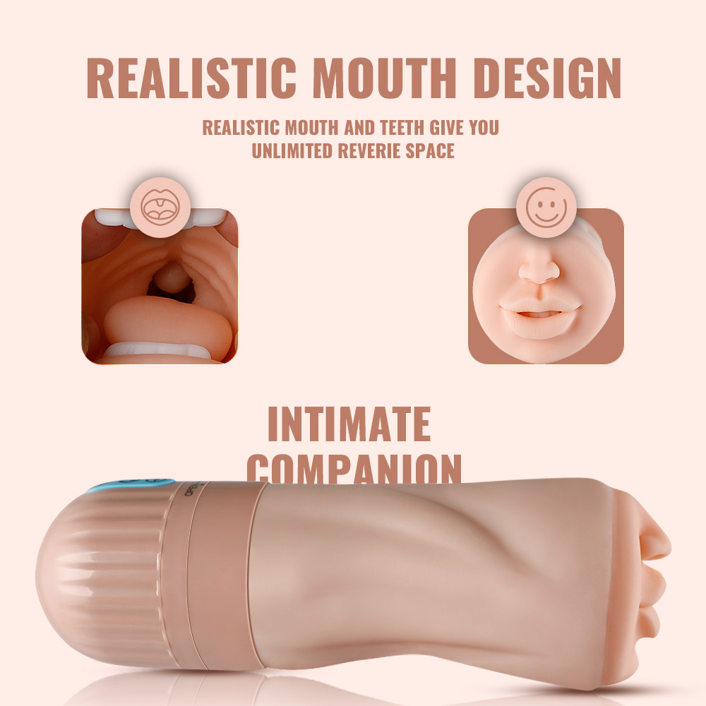 Masturbatore realistico a forma di bocca con suzione e funzione vibrante.
