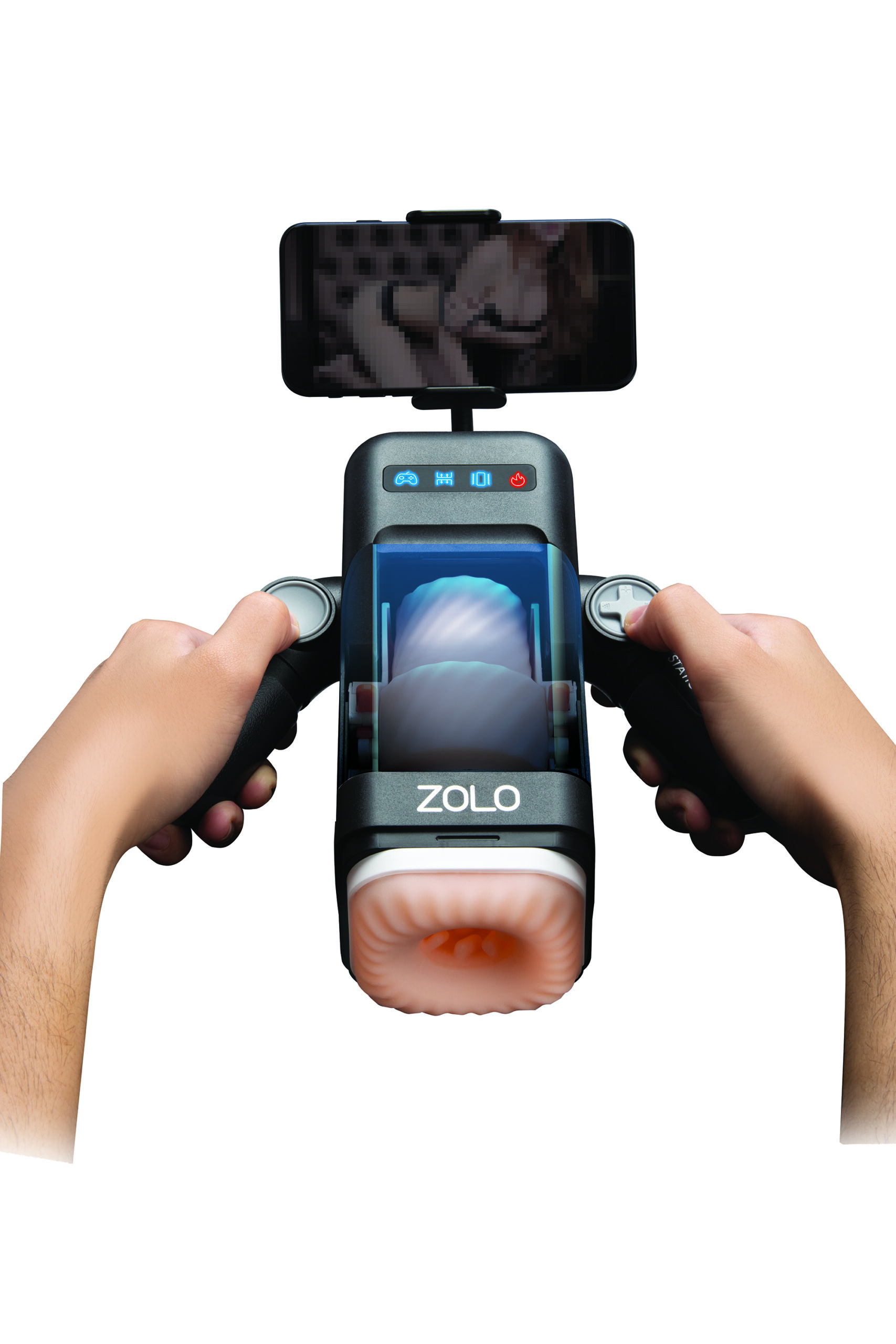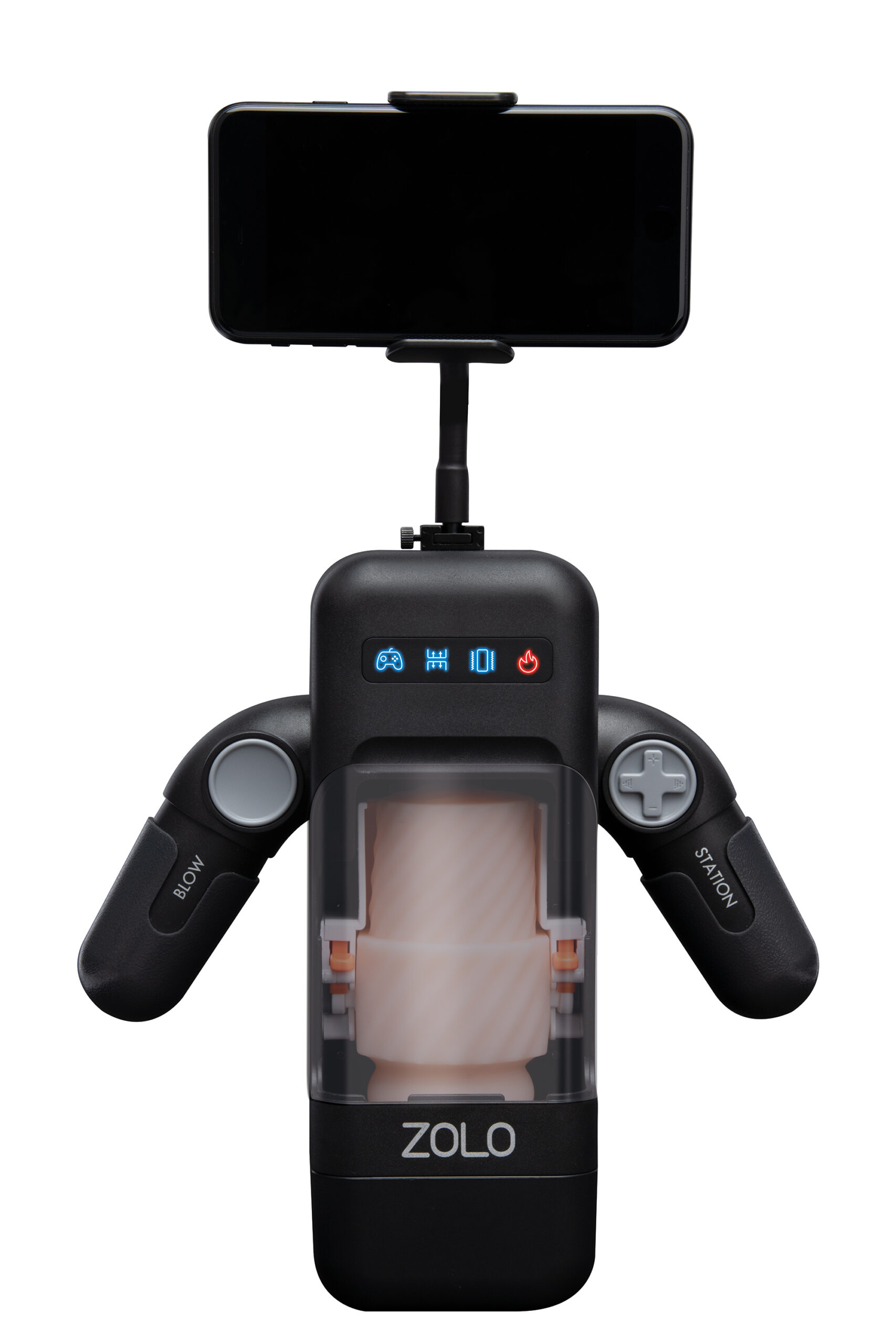 Get blown away by the ultimate male masturbator! Power your pleasure with ZOLO Blowstation, a video game controller-inspired masturbator offering an immersive, interactive pleasure experience with multiple modes of vibration, thrusting and heating. Cycle through 10 vibration patterns and 8 thrusting modes with the video game controller-inspired buttons. Immerse yourself in the erotic action with a mount that grips and positions your phone for the perfect viewing angle. The Blowstation is USB-C rechargeable and also features a UI indicator panel.